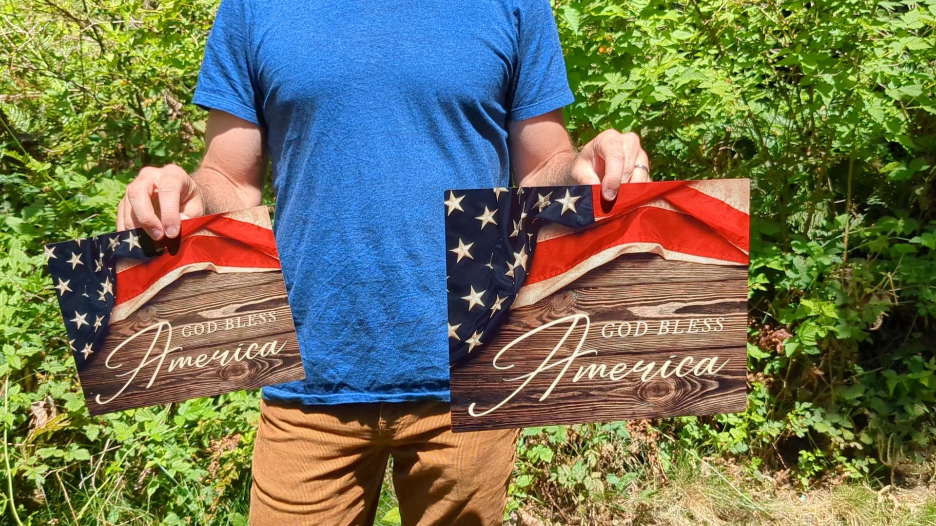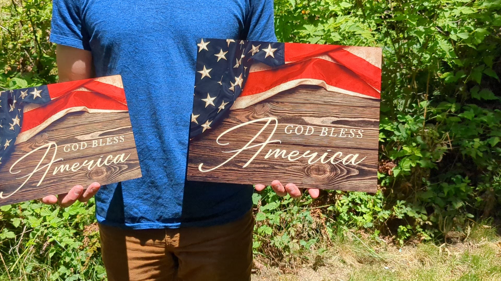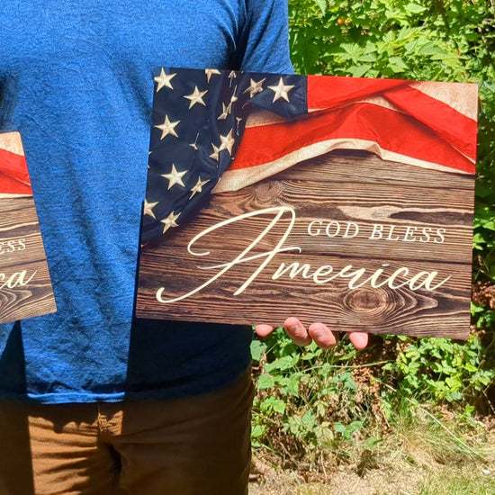 Show off your patriotism with our God Bless America piece🇺🇸 Available in 8x10, 11x14, and 12x18. There are different ways you can display your piece but if you plan to hang it, you can add hanging hardware for an extra $5. Installation is included with the purchase of hanging hardware.