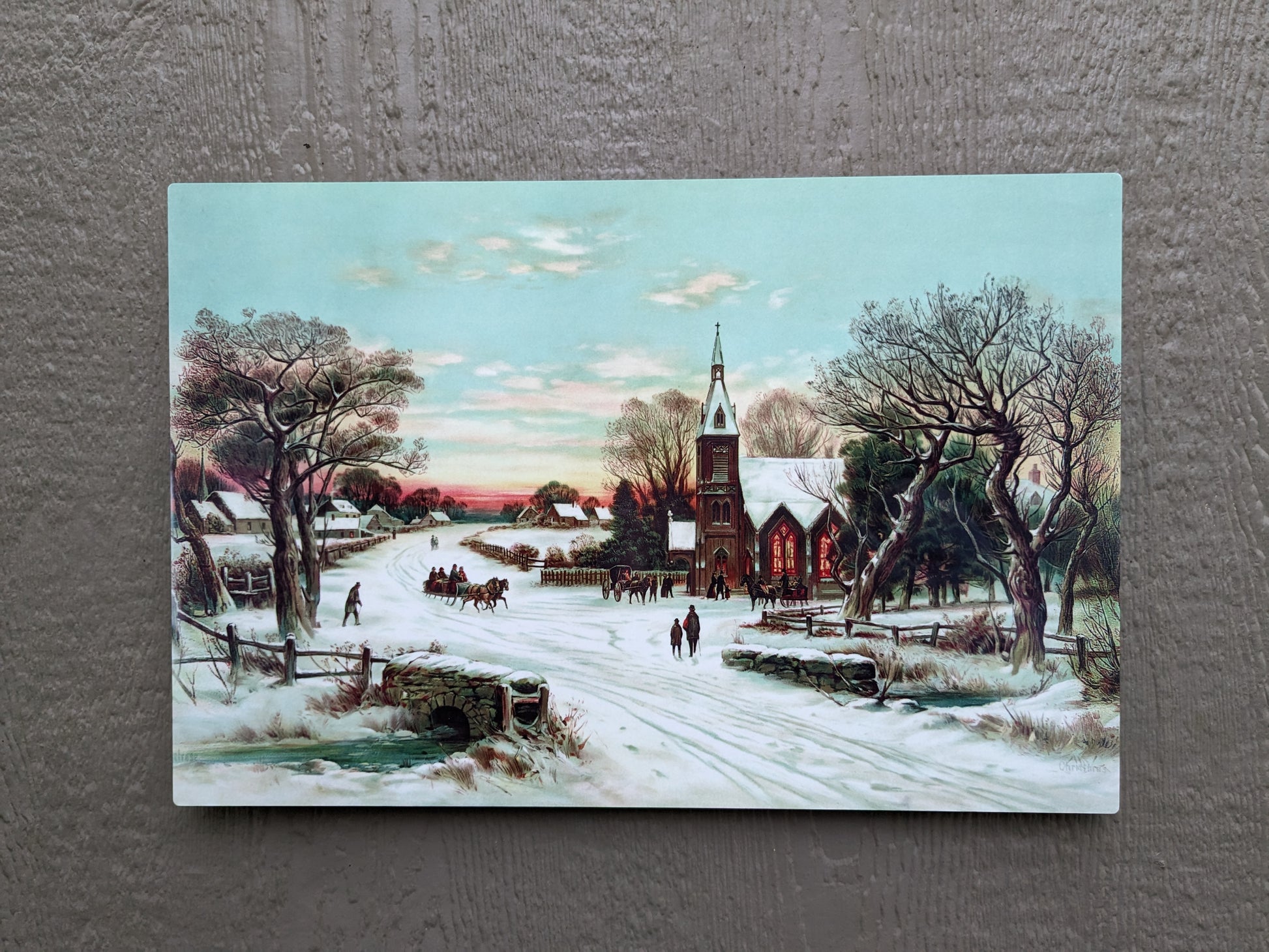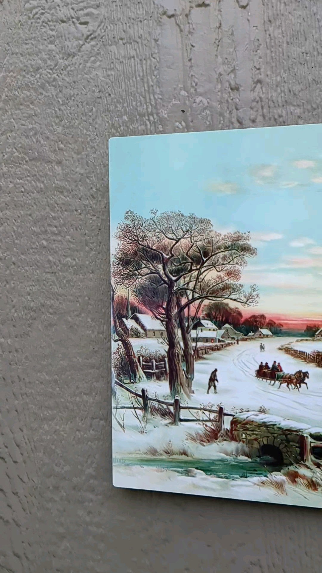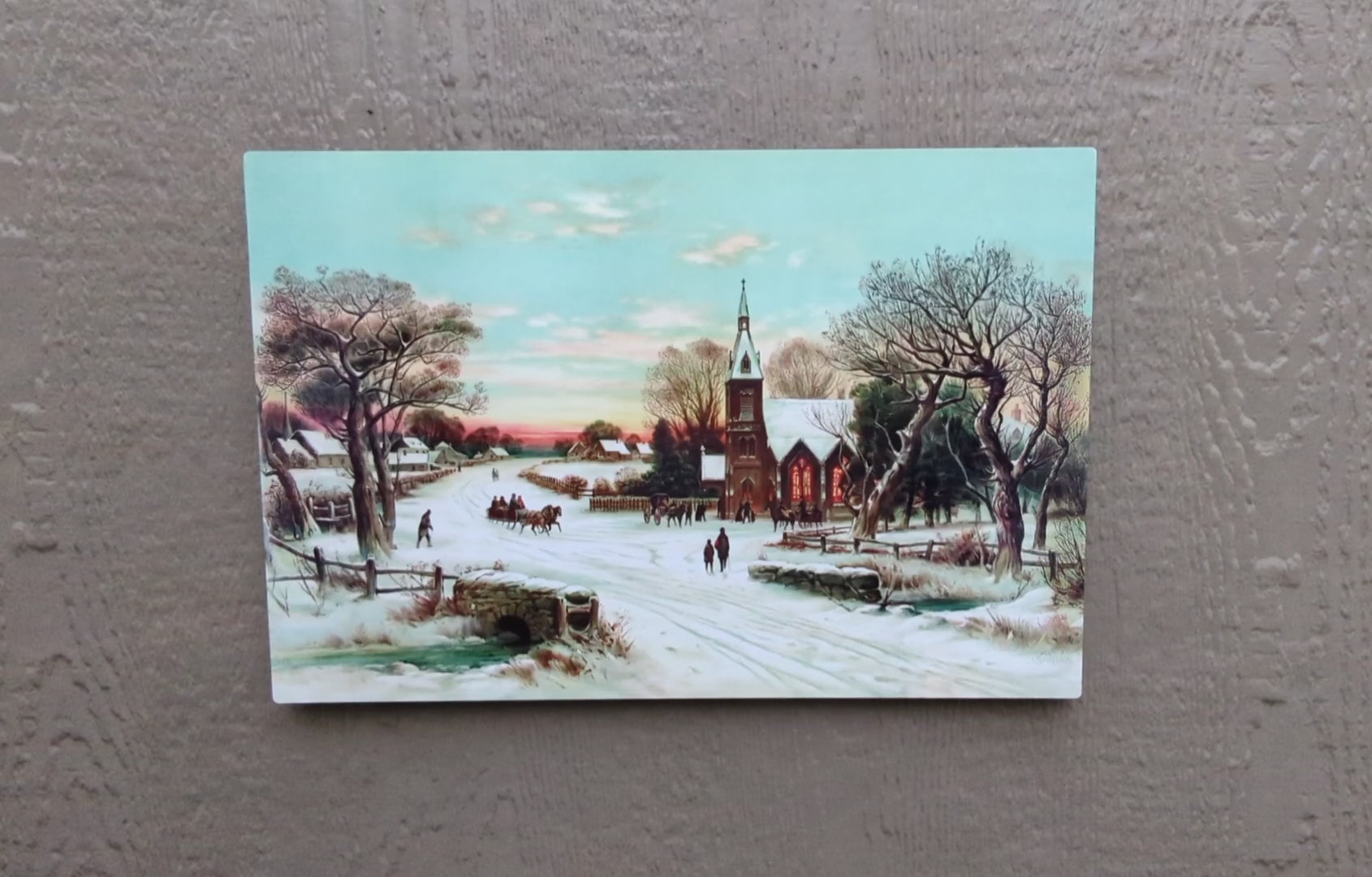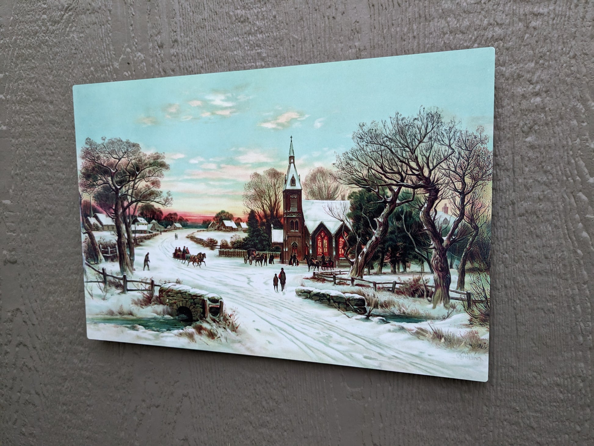 This piece will have you wishing for a white Christmas... Sunday Morning Christmas 🎄We've taken this vintage photo and spruced it up to make it brighter and vibrant. Available in 12x18. There are different ways you can display your piece but if you plan to hang it, you can add hanging hardware for an extra $5. Installation is included with the purchase of hanging hardware.